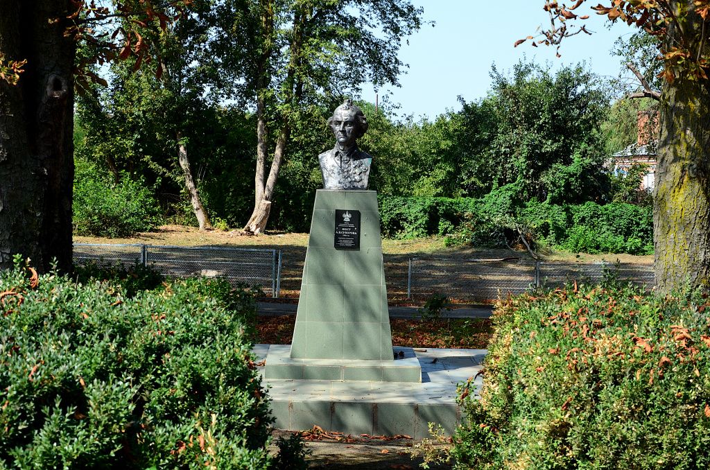 Памятник легендарному полководцу установлен рядом со зданием поселковой администрации, в котором раньше жила семья священника. Бюст Александра Васильевича Суворова на малахитовом постаменте тенью листвы укрывают высокие деревья, к нему ведет дорожка с аккуратно постриженными кустами.