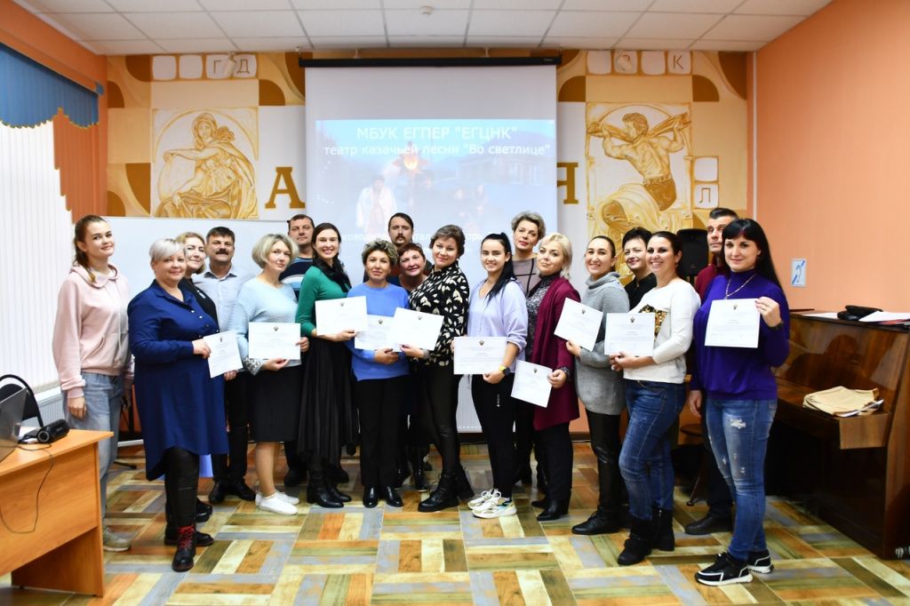 Ейчане тоже проводят свои фестивале, на которые пригласили участников семинара со своими коллективами. В практической части руководители коллективов народного пения, преподаватели детских школ искусств и музыкальных школ объединились в сводный хор, который исполнил песнопения Рождества Христова в двух традициях — Черноморской и линейных казаков. Также, по просьбе слушателей, разучили танцы «Краковяк» и «Гопак».