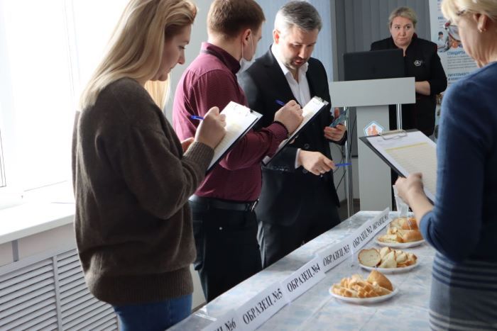 Уже традиционно оценка качества проходила вслепую - сотрудникам «Прогресс Агро» предстояло попробовать молочные и хлебобулочные изделия, не зная производителя.