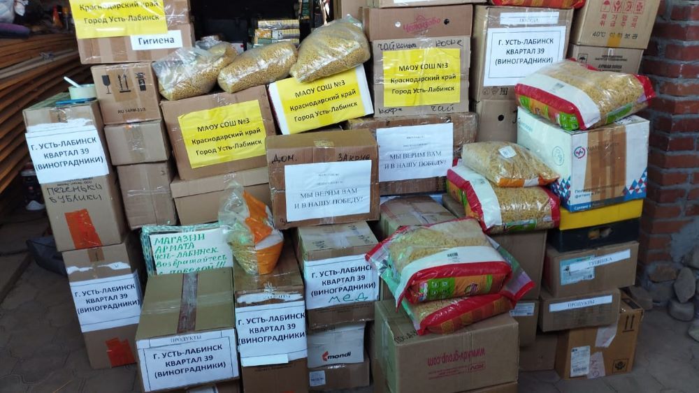 Волонтеры привезли ребятам тактические приспособления, маскировочные сети, одежду, продукты питания, в том числе сладости – печенье, конфеты, а также белье, теплые вещи, медикаменты, средства гигиены, детские письма. Все это собрали для бойцов отдельные жители и целые трудовые коллективы – депутаты района и лично председатель Совета Борис Поликин, федеральные судьи, медики, предприниматели, магазины, ученики и педагоги школ, активы микрорайонов. Пасечники передали около 20 кг меда, а в Краснодаре удалось найти две тысячи мешков, которые бойцы просили для укрепления блиндажей и окопов.