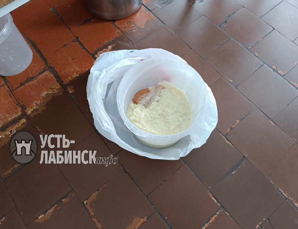 Идем в столовую. Оказалось, что от завтрака ничего не осталось. Просим показать посудину, в которую выбрасывают недоеденную пищу. Предполагалось увидеть полное ведро отходов. Но работница столовой показывает в ведерке на дне остатки утренней каши.